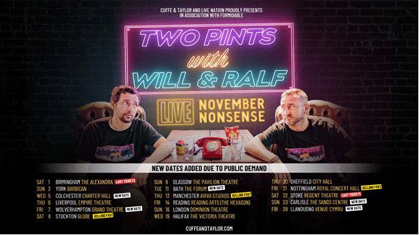 WILL MELLOR & RALF LITTLE ANNOUNCE EXTRA DATES FOR NOVEMBER NONSENSE: THE TWO PINTS PODCAST LIVE TOUR